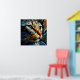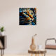 Das Portrait eines wunderschönen Katzenkopfes wird in einem abstrakten Buntglasstil präsentiert. Die Farbtöne Blau, Gelb und Türkis verbinden sich in dieser künstlerischen Komposition, die den felinen Charme in einer faszinierenden und eleganten Darstellung einfangen lässt.