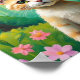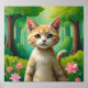 This whimsical poster features an enchanted orange tabby cat with green eyes is nestled in a vibrant woodland with delicate flowers, capturing a sense of tranquility and whimsical charm. Finished in an oil paint art print.