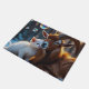 Eine sanfte, langhornige Ziege teilt sich einen zarten Moment mit einem kleinen weißen Kätzchen in einem schneebedeckten Wald, umgeben von schimmernden Blasen. Eine schöne Darstellung unerwarteter Freundschaft und Wintermagie.