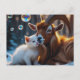 Senden Sie eine herzliche Nachricht mit dieser bezaubernden Postkarte, die eine unwahrscheinliche Winterfreundschaft zeigt! Eine majestätische, hornende Ziege schnuppert sanft ein winziges, flauschiges, weißes Kätzchen in einer ruhigen, schneebedeckten Landschaft, beleuchtet von sanftem Licht und spielerischen, schillernden Blasen. Dieses wunderbare Bild zeichnet einen Augenblick der reinen Verbindung und sanfter Zuneigung aus, perfekt für Tierfreunde und für die Freude