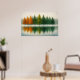 A tranquil forest scene unfolds in gradient harmony—fiery orange trees on the left surrender to soft yellow-greens, then deepen into solemn evergreens on the right. Their mirrored reflections ripple gently across a still lake, doubling the emotional weight of the composition. Snow drifts quietly through a misted backdrop, softening the edges of time and space. This piece captures the hush between autumn’s last breath and winter’s first whisper—a moment of transition, memory, and quiet anticipation.