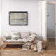 Impressionistic trees line a calm body of water, their reflections creating a mirrored effect. Soft autumn hues of orange and green are set against a muted background, emphasizing a serene and tranquil environment.