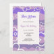birthday party invitation with girly purple and white flowers for the young at heart. A playful flower pattern frames a script typography "she's fifty" mixed with a more classic serif font. Celebrate fifty years of life with this beautiful botanical design. The fun part is you can change out ALL of the colors!! You can not only change the background colors and font, but you can change the lines for the flowers as well.