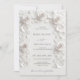 This elegant minimalist contemporary wedding invitation features a white 3 dimensional roses frame. With a scannable qr code for your wedding website on the backside.