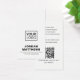 Weiße oder benutzerdefinierte Farbe, modernes, berufliches, vertikales Design der Visitenkarte mit Vorlagenfeldern für Name, Firmenname/Firmentitel, Logo (Foto oder andere Grafik), QR-Code und Kontaktinformationen einschließlich Social Media-Icons. Ändern Sie die Hintergrundfarbe, verschieben und verändern Sie Elemente mit dem Anpassungstool.