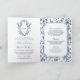 White and Blue Chinoiserie Crest QR Code Wedding Einladung