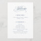 These elegant, simple white wedding welcome programs feature classic and luxe dusty blue calligraphy for a timeless, fancy look.