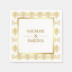 Elegante Papierserviette mit einem goldenen Rahmen aus Imitat und einem goldenen Damast.