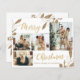 Budget, Elegantes, Modernes Weiß und Gold Botanisches Blätter 4 Foto Collage Frohe Weihnachtskarte. Dieses festliche, mimimalistische, skurrile vier (4) Foto-Urlaubskarte-Vorlage verfügt über eine hübsche Foto Collage, Imitate Gold-Folie botanische Blätter, Winterbeeren und sagt Frohe Weihnachten! Der Grußtext "Frohe Weihnachten" ist in einem handgeschriebenen Schriftart in Goldfarbe auf weißem Hintergrund geschrieben. Auf der Rückseite ein waagerechtes Foto mit Goldrahmen und Imitaten, Blätter mit Goldfolie aus Glitzer auf Weiß. Hübscher Sake für Ihre Familie und Freunde in dieser Weihnachts- und Feiertagssaison. Billige Urlaubskarten.