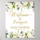 White and Gold Greenery Baby Dusche Begrüßungszeic Poster