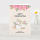 Erntedank Grußkarte mit extravaganten Aquarell weißen Kürbis mit Akzenten der Imitate Gold Glitzer. Umgeben von grünen Blätter und rosa wilden Blume.