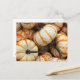 Niedliche, weiße und orangefarbene Kürbisse laden zum Herbst, Erntedank und Halloween ein.