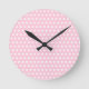 White and Pink Polka Dots Pattern. Runde Wanduhr