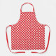 Die Schürze ist rot und weiß. Weißer Polka hat rote Punkte.