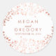 White and Rose Gold Gipskraut Hochzeit Runder Aufkleber