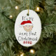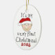 Sie können den Rücken personalisieren und das Datum an dem ersten Weihnachtskuchendekor dieses niedlichen Babys ändern, in dem ein Kind in einem roten Weihnachtssockel und in einem Kid-Style-Text steht, der lautet: "Es ist mein allererstes Weihnachtsfest!".