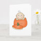 Ein hübsches Baby mit einem lockigen Haar sitzt in einem orangefarbenen Kürbis auf individuell anpassbaren Halloween-T - Shirt, Magneten, Grußkarten, Totentaschen und anderen Gegenständen, die sich perfekt für das erste Halloween des Babys eignen!
