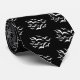 Diese neuartige Halloween-Krawatte ist in einer Sammlung von einfachen Fledermausbildern bedeckt, die in einem Wolkenmuster zusammenfliegen. Die Fledermäuse sind weiß und die Krawatte schwarz.