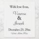 Eleganter, weißer Hintergrund mit schwarzem Text Hochzeitsempfang. Mit Liebe von, personalisieren Sie Braut und Groom die ersten Namen, Hochzeitstag. Fügen Sie den Weinnamen unten hinzu oder löschen Sie ihn. Entwürfe von TamiraZDesign.