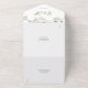 Ein Element in einer Hochzeitseinladung mit hübschen weißen Blüten und schicken goldenen Schriftzeichen Monogramm-Initialen. Die Einladung enthält eine perforierte RSVP-Karte, die für Sie individuell adressiert oder links als leere Adresse für die Handschrift der Adressdaten Ihres Gastes verwendet werden kann. Entwickelt von Thisisnotme©