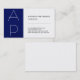 White Blue Strip Trendy Monogram Business Card Visitenkarte