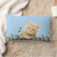 Weiße Blume & Ginger Tabby Kat auf Light Blue Lumbar Kissen.