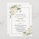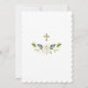 Elegantes Kartendesign mit feinen, weißen Blume-Ecken in Aquarellfarben, einem vergoldeten Glitzern aus Imitat, Imitat-Goldkreuz, Blumenspalte auf weißem Hintergrund. Auf der Rückseite weiße Blume Bouquet und Kreuz. Verwenden Sie das Tool Personalisieren, um Ihre Informationen hinzuzufügen. Für passende Artikel besuchen Sie bitte meine neue Taufkirchensfeier-Sammlung.