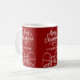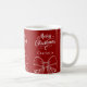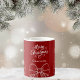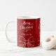 Roter Hintergrund, weißer Text und Bows Feiern Sie die Saison mit unserer modernen roten Frohe Weihnachtsfeier Tasse Personalize und fügen Sie Ihren Namen.