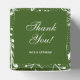 Diese 2''" quadratischen grünen Gastgeschenke sind mit einem eleganten, weißen Blatt- und Punktmuster versehen, mit den Worten "Danke" und mit den Namen, die Sie oben in einem schicken weißen Schriftzeichen tragen. Ideal für Hochzeit, Brautparty, Jubiläum, Weihnachten oder jeden besondere Anlass. PASSENDE Artikel und mehr Farben in unserer Sammlung.