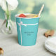 Dieser Papierbecher weist eine Grafik mit weißem Band, die an einen Bogen gebunden ist. Benutzerdefinierter Text erlaubt es Ihnen, eigene Namen oder Nachrichten hinzuzufügen.