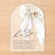 She’s Tying the Knot – White Bow Bridal Shower Invitations. Delicate, dreamy, and effortlessly romantic — this is the kind of bridal shower invitation you’ll want to tuck into a keepsake box. Crafted on frosted acrylic, it features a soft white mist background: subtly transparent, like morning light through sheer curtains. A luxurious white satin ribbon bow, illustrated with gentle detail, gracefully drapes from the right side — its creamy off-white tone kissed with the faintest blush undertone. It catches the light in that magical way, whispering modern coquette meets classic romance.