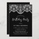 Mit dieser individuell gestaltbaren Geburtstagsfeier laden wir Sie zu Ihrer Veranstaltung ein. Es verfügt über eine elegante Brocade-Spitzen-Garage auf einem schwarzen Hintergrund. Personalisieren Sie diese, indem Sie Ihre Daten hinzufügen. Diese Geburtstagseinladung ist perfekt für jede Veranstaltung oder Saison.