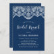 White Brocade Lace Navy Blue Bridal Brunch Einladung