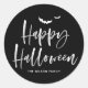 White Brush Lettering Happy Halloween | Vielen Dank für den klassischen Rundaufkleber. Versenden Sie Halloween-Grüße an Familie und Freunde mit diesem individuell gestaltbaren Aufkleber. Es zeigt Pinselschrift mit Fledermausillustrierung. Dieser lustige und moderne Halloween-Aufkleber eignet sich hervorragend für Einladungen, Party- und Kartengeschenke und Favoriten. Personalisieren Sie Ihre persönlichen Daten, indem Sie Ihre eigenen Daten hinzufügen.
