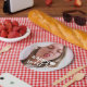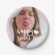 16 . Geburtstag Papier Teller gedruckt mit einem Foto des Geburtstagsmädchens. Foto 16 . Geburtstag-Karte personalisiert mit glücklich süßen 16 in einem Pinsel-Skript-Overlay in Weiß mit einem kleinen Herz.