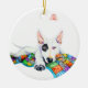 White Bullterer on Patchwork - Kunst Keramik Ornament