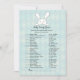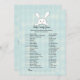 Ein weißes Hasen über dem Spieltitel mit Baby Aqua Blau, Diamant Raute Hintergrund. Für Sie erstellte Vorlagen. Das ist ein Baby Candy Baby Dusche Spiel.
