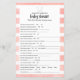 Genießen Sie das Spielen Was war Mommy Wearing? Baby Dusche Spiel. Niedlicher, weißer Hase erscheint direkt über dem Namen von Honoree auf diesem hellen, Baby Girl rosa und weiß Streifen, Aquarell Hintergrund.