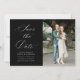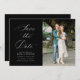 lovely white script lettering black wedding save the date wedding card. The text and colors can be edited.