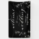 Ein modernes Schwarz-Weiß-Begrüßungszeichen in eleganter und klassischer Kalligrafie mit weißen Linien-Kunstfloralen auf schwarzem Hintergrund