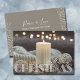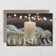 Schöne weiße Kerze, Ziergegenstände und Decken werfen auf die Vorderseite dieser flachen Urlaubskarte mit Fröhlichen Weihnachten in schicken Schriften und Ihrem personalisierten Gruß auf der Rückseite. Wählen Sie Matte für schwerstes Papier und High Definition für beste Druckqualität.