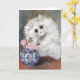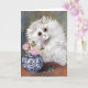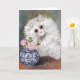 Eine leere Grußkarte mit dem Gemälde des britischen Künstlers Louis Wain (1860-1939), White Cat. Ein hübsches Portrait einer weißen persischen Katze neben einer blau-weißen Porzellanvase mit rosa Rosen. Wain war bekannt für seine mit Augen Katzen-Illustrationen.