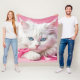White Cat with Pink Ribbons Fleecedecke