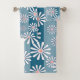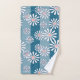 White chamomile flowers on striped blue background badhandtuch set