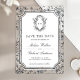 Elegant wedding save the date featuring a beautiful victorian crest with intricate chinoiserie pattern. Simply add your event details on this easy-to-use template to make it a one-of-a-kind save the date card.