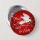 Brighten Sie Ihr Outfit mit diesem inspirierenden "One of Kind" White Christmas Dove Button! Es verfügt über eine serene weiße Weihnachtstaube, die einen Olivenzweig auf einem roten Weihnachtsgebirge zwischen Weihnachtsstars und Schneeflocken trägt, mit dem sich die blühenden Grauen und Silbernen Ribbons ausbreiten..."Weltfrieden"! Dies ist ein Original Art Design von Künstler Kerry Miller.