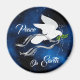 Personalisieren Sie dieses inspirierende "One a Kind" White Christmas Dove Magnet! Es besitzt eine serene weiße Weihnachtstaube, die einen Olivenzweig unter den Weihnachtsstars trägt, mit dem sich die blühenden Grauen und Silbernen Ribbons ausbreiten..."Weltfrieden"! Dies ist ein Original Art Design von Künstler Kerry Miller.
