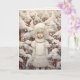 Sehr romantische skurrile Illustration von einem kleinen Mädchen in einem weißen Kleid und Hut stehend zwischen weißen Pflanze und Bäumen.