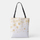Dieser festliche Wintertotbeutel mit einer zauberhaften weißen Ente, die mit einem heiligen Kranz um den Hals geschmückt ist, und goldenen Schneeflocken im Hintergrund. Auf der Rückseite gibt es goldene Schneeflocken. Diese Tasche ist anpassbar, geben Sie Ihren Namen ein!