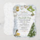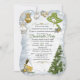 Zarte Gold- und Silberbaumdekorationen, umgeben von salzgrünen, festlichen Blättern mit frisch gefallenem Schnee in einem Winterwunderland für eine Winterhochzeit.